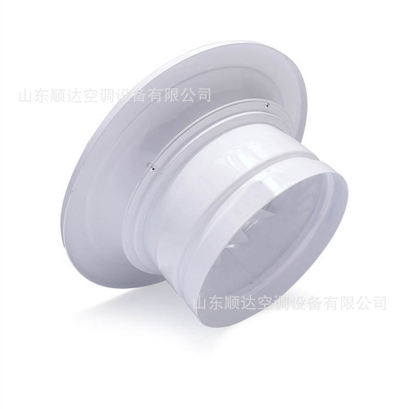 旋流風(fēng)口是空調(diào)系統(tǒng)中的一個(gè)排風(fēng)工具。在空調(diào)通風(fēng)系統(tǒng)中可用作大風(fēng)量,大溫差送風(fēng)以減少風(fēng)口數(shù)量,安裝在天花板或頂棚上,可用于3米以內(nèi)低空間,也可用二種高度大面積送風(fēng),高度甚至可達(dá)10米以上。