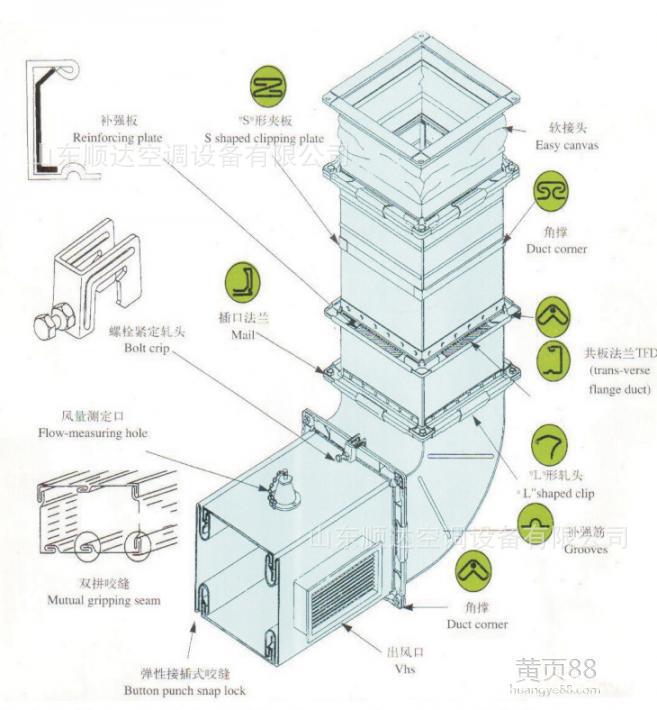 產(chǎn)品多用于大型商場,寫字樓,地鐵站,大型超市,現(xiàn)代化工廠的消防排煙送風,空調(diào)通風,排塵通風等。本公司生產(chǎn)工藝先進,產(chǎn)品質(zhì)量優(yōu)良。產(chǎn)品成品表面平直,外形標準美觀,為施工現(xiàn)場安裝方便、快捷打下了良好的基矗共板式法蘭風管又稱無法蘭風管,其制作形式比傳統(tǒng)的矩形風管加工速度更快捷、更方便、更小的漏風率。