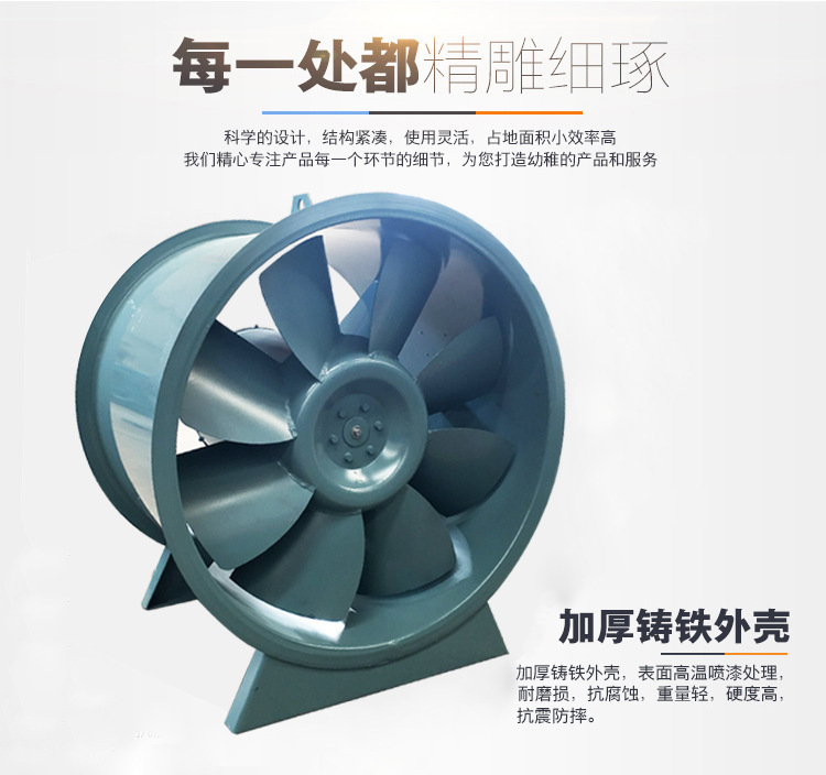 混流(斜流)風機,風壓系數(shù)比軸流風機高,流量系數(shù)比離心風機大,用在風壓和流量都“不大不小”的場合。它填補了軸流風機和離心風機之間的空白。同時具備安裝簡單方便的特點。
